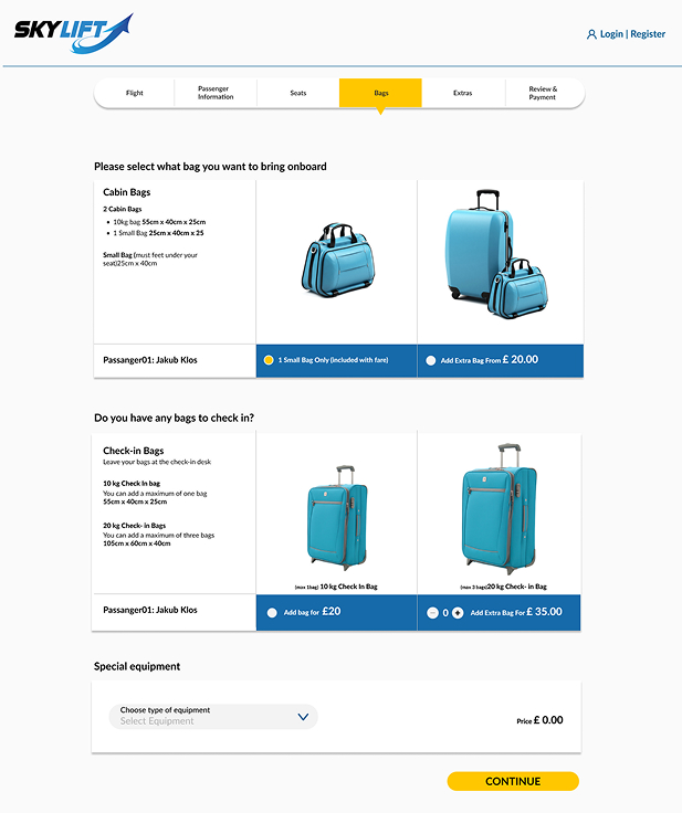 - Extras (baggage, seats)